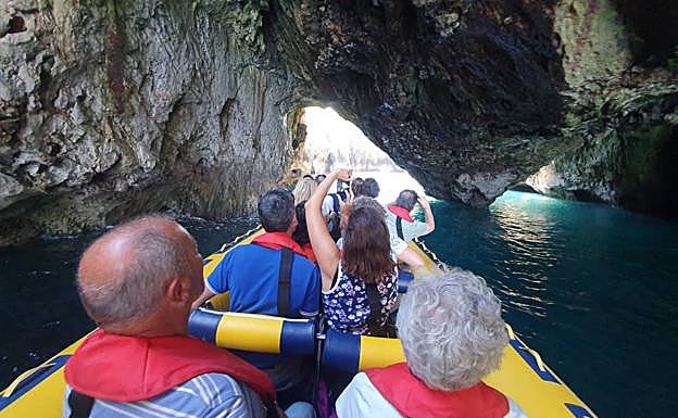Tras el espectáculo, la embarcación, de casco rígido y neumática, se alejará algo de la costa para favorecer la visión completa de la Sierra del Cuera y los Picos de Europa. Hasta volver al punto de partida.