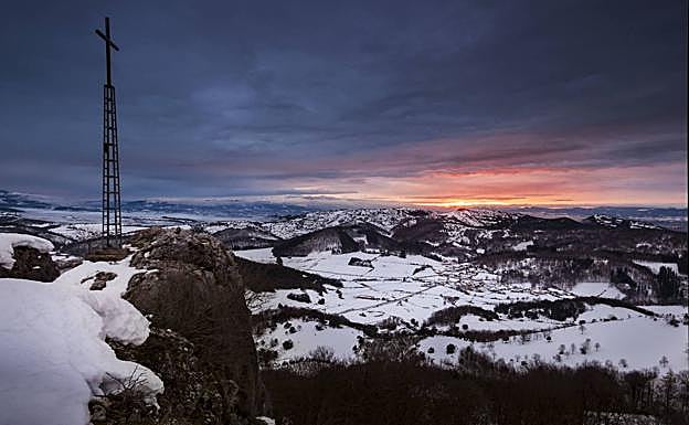 Hasta este lugar se desplazan muchos alaveses cuando el paisaje queda cubierto por un manto brillante y níveo. La razón: hay mucho espacio para jugar y cuestas por las que deslizarse con el trineo. De paso, aprovechando la excusa, puedes contemplar el edificio del Santuario de Nuestra Señora de Oro. Aguarda al sur del Gorbea, justo en el centro del Valle de Zuia. La ladera norteña acoge con mimo el templo de la patrona.