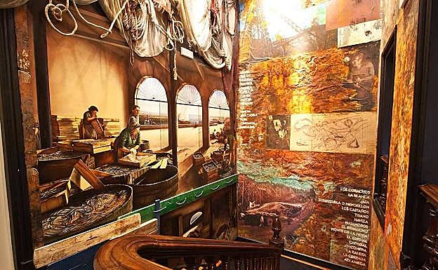 Ya en el interior, puedes asistir a la muestra escultórica de Rafa Cantera. Y debes detenerte frente a la escalera fabricada en madera a finales del siglo XIX, frente a los magníficos murales de Victor Goikoetxea. El artista hernaniarra explica que la composición retrata la vida en los caseríos de la comarca, lo que suponían para Santurce la minería y la pesca. «No he querido hacer una obra contemporánea que no se entendiera, sino algo que conmueva a los vecinos. Quiero que cuando los antiguos mineros o arrantzales o sus familiares la vean, reconozcan la labor que se realizaba y se identifiquen con ella».