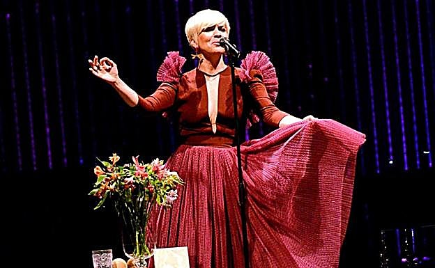 Muchas veces hemos visto en directo a la siempre risueña cantante malagueña Pasión Vega (Ana María Alías Vega, nacida en Madrid el 23 de abril de 1976). La última vez en mayo de 2019, en el Teatro Serantes de Santurtzi (de esa velada es la foto que usamos, disparada por Carlos García Azpiazu, rudo y barbado muchachote que salió satisfecho de la delicada velada), donde recaló con la gira de su disco '40 quilates' (Concert Music, 17), con el que conmemoraba sus 40 años de vida y 25 de carrera profesional.