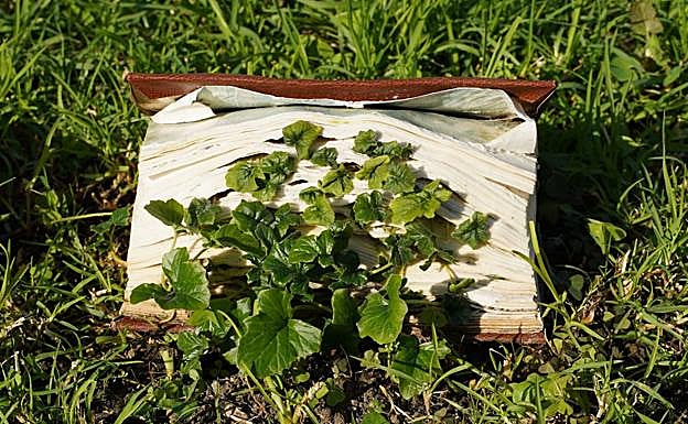 La muestra de Saioa Olmo puede parecer, a primera vista, el escenario de una película de ciencia ficción. La sala de exposiciones de la Fundación BilbaoArte se ha convertido en cierto laboratorio de experimentación agrícola y el proyecto resulta sorprendente. Las plantas se nutren de libros de carácter enciclopédico, como si su contenido alimentara su crecimiento. Junto a las mesas de trabajo, hallamos una bala de hierba, alimento del ganado en tiempos de escasez, una colección de líquidos medicinales y fertilizantes, y una estalagmita unida a una botella de suero. Pero el asombro no finaliza ahí. Cuando el espectador se acerca a cada elemento escucha voces fantasmales que le proporcionan consejos.