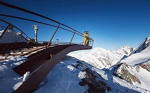 Este mirador se encuentra situado a más de 3.000 metros de altura (3.165 metros), sobre el glaciar de Stubai. Desde este magnífico balcón se puede disfrutar de unas impresionantes vistas del centenar de cumbres que rodean a este impresionante lugar. Sobre la cima de la montaña, sobresale esta pasarela y plataforma voladiza de acero que está localizada sobre la propia roca y que desaparece bajo la nieve durante la mitad del año.