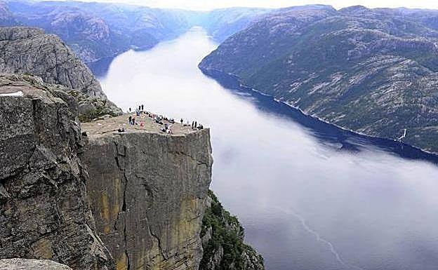 La Roca Preikestolen o el Púlpito es uno de los miradores naturales más famosos del mundo, se alza a 604 metros sobre el fiordo Lysefjord y la ruta que lleva hasta él es una de las más famosas de Noruega. Como si un escultor la hubiera tallado, esta formación rocosa se levanta lisa y vertical sobre las frías aguas del fiordo. A ella se puede acceder a través de una caminata de cuatro horas de duración y unos ocho kilómetros de recorrido. Una ruta de dificultad media para la que es recomendable tener algo de experiencia en senderismo, ya que algunos de sus tramos son bastante empinados. Actualmente la Roca Preikestolen puede visitarse durante todo el año, aunque hay que tener especial cuidado y seguir las recomendaciones durante la estación invernal y en los días con mal tiempo. También es recomendable ir con cuidado al acercarse al borde de esta explanada pétrea, ya que se trata de un lugar en plena naturaleza en el que no hay protecciones o vallas.