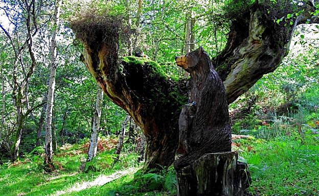 'Mágico', es la zanahoria que tendrás que poner delante de los críos en este caso, en cuanto se menciona la magia, atienden a lo que se les va a contar. Si eso no funciona y, a pesar de todo, se niegan a ponerse las deportivas, háblales de las tallas de madera que van a encontrar por el camino, sobre mitología asturiana y otros asuntos. De las de piedra que incitarán su imaginación. De los retazos del libro 'El Valle Invisible' dispuestos sobre paneles informativos. Serán 12 kilómetros, pero se les harán cortos porque caminan distraídos buscando la serie de figuras.