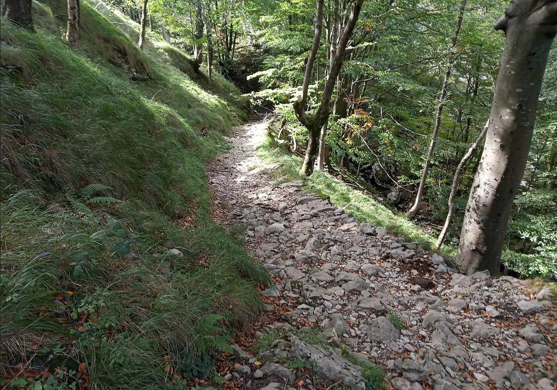 El camino para llegar hasta este hayedo no le desmerece. Recorreremos la vieja calzada que desde Arrazola remontaba el barranco de Errekaundi hasta el collado de Zabalandi. Utilizada en tiempos ancestrales por arrieros, pastores y carboneros, allí se dividía en dos ramales. Uno se dirigía a Aramaio y facilitaba el comercio entre los dos valles y el otro llegaba hasta el Santuario de Urkiola.