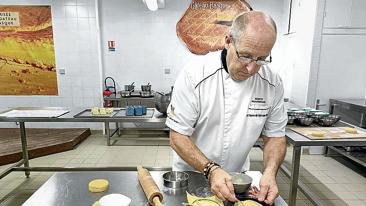 El popular suele incluir cerezas, «la gente metía lo que tenía por casa, y en esta zona abundaban las cerezas. Recogían frutas de temporada, salvo manzanas, relacionadas con las brujas», narra a la vez que modela un lauburu de masa para adornar la cima del dulce premio. Cincuenta y cuatro años dedicado a la cocina dan para muchas anécdotas, por si apetece preguntarle alguna. «La tradición está en la casa, no en los comercios, por eso es importante venir, aprender y luego hacerlo en tu cocina», defiende antes de especificar la receta.
