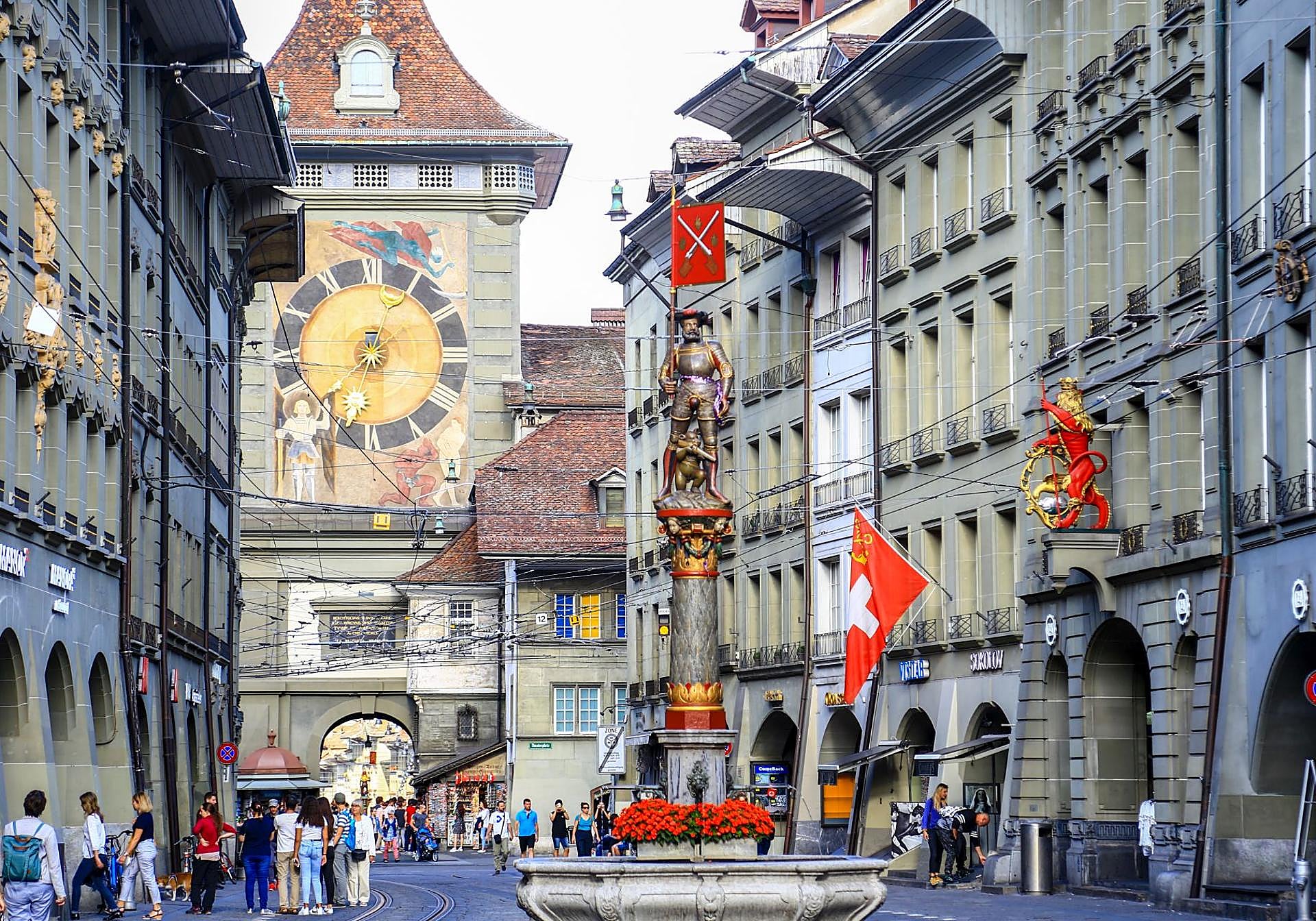 Cada hora una nutrida multitud de turistas se congrega para observar el ir y venir de varios personajes, hay osos, por supuesto, bufones, gallos e incluso está el dios Cronos marcando el tiempo. Un armero, Kasper Bruner, ideó el montaje que siguen contemplando, admirados, relojeros e ingenieros de todo el mundo. La ceremonia tiene lugar en la avenida principal del casco antiguo Patrimonio de la Humanidad, una calle repleta de fuentes coronadas por estatuas renacentistas, de edificios gremiales presididos por figuras simbólicas, de casas de cuatro alturas donde incluso llegó a vivir con su familia el mismísimo Albert Einstein.