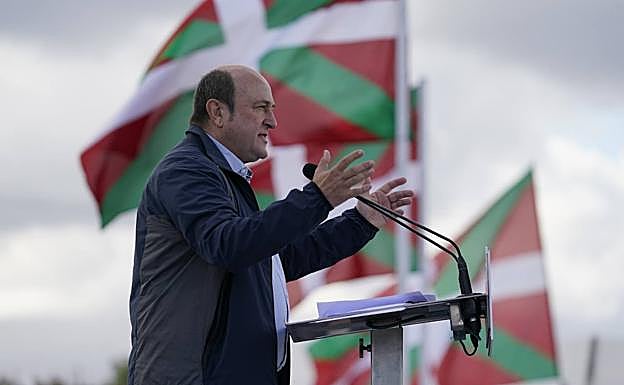 «A ver... ¡los de Juntas y Diputación! Todos juntos». Uno de los voluntarios del Alderdi Eguna organizaba así, poco antes de las doce, la cola para el tradicional desfile de entrada ante los afiliados. Lo hacía rodeado de los miles de personas han vuelto a abarrotar este domingo las campas de Foronda en el primer Alderdi Eguna sin restricciones tras dos años de pandemia. «Ya era hora de poder juntarnos y vamos a tener suerte porque al final no llueve», comentaba Ana Otadui, presidenta de las Juntas, poco antes de empezar. El partido la ha vuelto a proponer como candidata. «Estoy contenta. Ahora hay que ver qué dicen las bases», comentaba.
