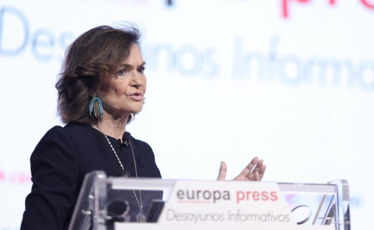 La vicepresidenta primera del Gobierno y ministra de la Presidencia, Relaciones con las Cortes y Memoria Democrática, Carmen Calvo. foto: ep | Vídeo: Atlas