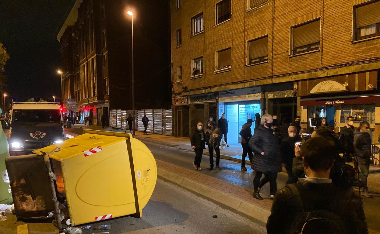 A pesar de las llamadas a la «lucha», la manifestación de Barakaldo acabó frente a los juzgados sin apenas incidentes. Durante la marcha, unos pocos encapuchados cruzaron tres contenedores. Lo hicieron mientras algunas personas coreaban cánticos en favor de la libertad de expresión y otras increpaban a los medios gráficos que querían fotografiar lo que estaba pasando en ese momento. Ya en la plaza, los manifestantes más veteranos pedían tranquilidad y recordaron que los convocantes de la protesta «se la estaban jugando» si ocurrían incidentes.