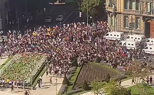 Tras varios minutos de tensión, varias salvas al aire y un amago de carga por parte de la Ertzaintza los manifestantes se dispersaron mientras arrojaban objetos contra los antidisturbios. A partir de ahí, la protesta procedió a cruzar la capital vizcaína por algunas de sus calles principales. Los incidentes se repitieron en Indautxu, el Ensanche, la Gran Via, El Arenal y el Casco Viejo. Los manifestantes avanzaron cruzando contenedores e intentando prender fuego a algunos de ellos.