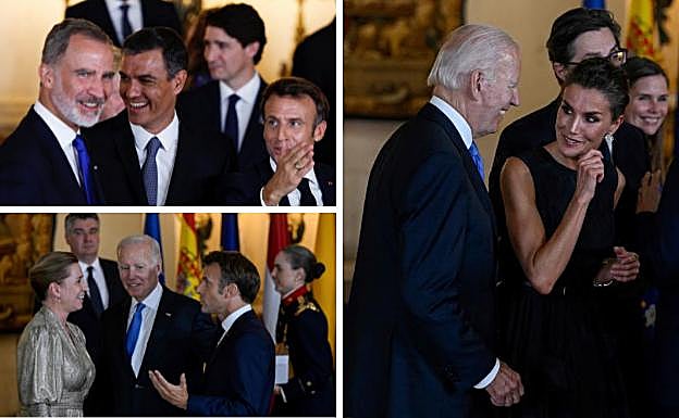 «La Cumbre de Madrid debe representar el futuro; debe proporcionar la convicción, la guía y los instrumentos necesarios para que nos adaptemos a esta nueva realidad estratégica y caminemos con determinación hacia un futuro en el que nuestras sociedades puedan sentirse seguras y vivir en paz». Felipe VI ofreció este martes una cena de gala a los jefes de Estado y de Gobierno participantes en el cónclave que este miércoles y el jueves reúne en Madrid a cuarenta delegaciones internacionales. Los Reyes dijeron sentirse «honrados» y, en su discurso de bienvenida, pronunciado integramente en inglés, Felipe VI recordó que «nunca antes este Palacio había abrazado y sentado a un número tan grande de los principales líderes mundiales a la vez».