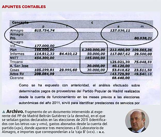 Dicho «informe aclaratorio», al que ha tenido acceso este periódico, añade que los hechos «tienen una inequívoca proximidad temporal con la supuesta comisión de hechos delictivos en los que se presume la autoría de estas personas» y que el modus operandi coincidiría con el «manejo de fondos de procedencia opaca» entre el gerente del PP de Madrid y un destacado proveedor electoral, Óscar Sánchez. Todos ellos investigados por delitos electorales y/o de falsedad mercantil.