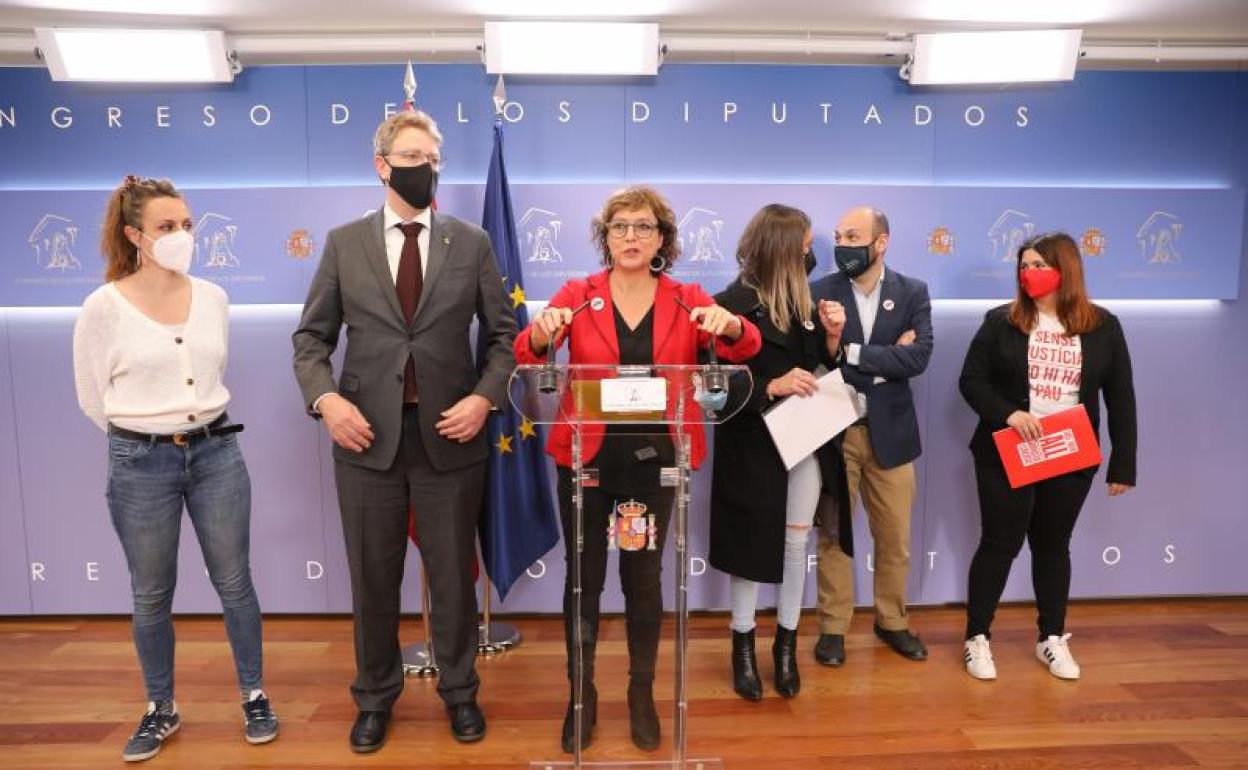 La diputada de ERC, Montserrat Bassa, preside la rueda de prensa acompañada de miembros de Junts, la CUP y el PDeCat en el Congreso de los Diputados EP