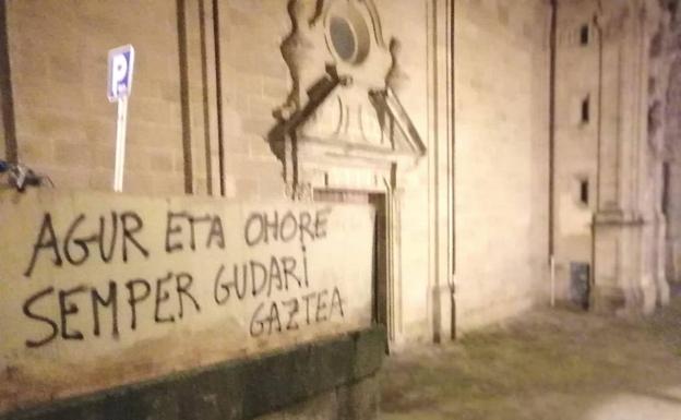 Una de las pintadas, en la plaza de la Iglesia Santa María, rezaba: 'Agur eta ohore. Sémper gudari gaztea'