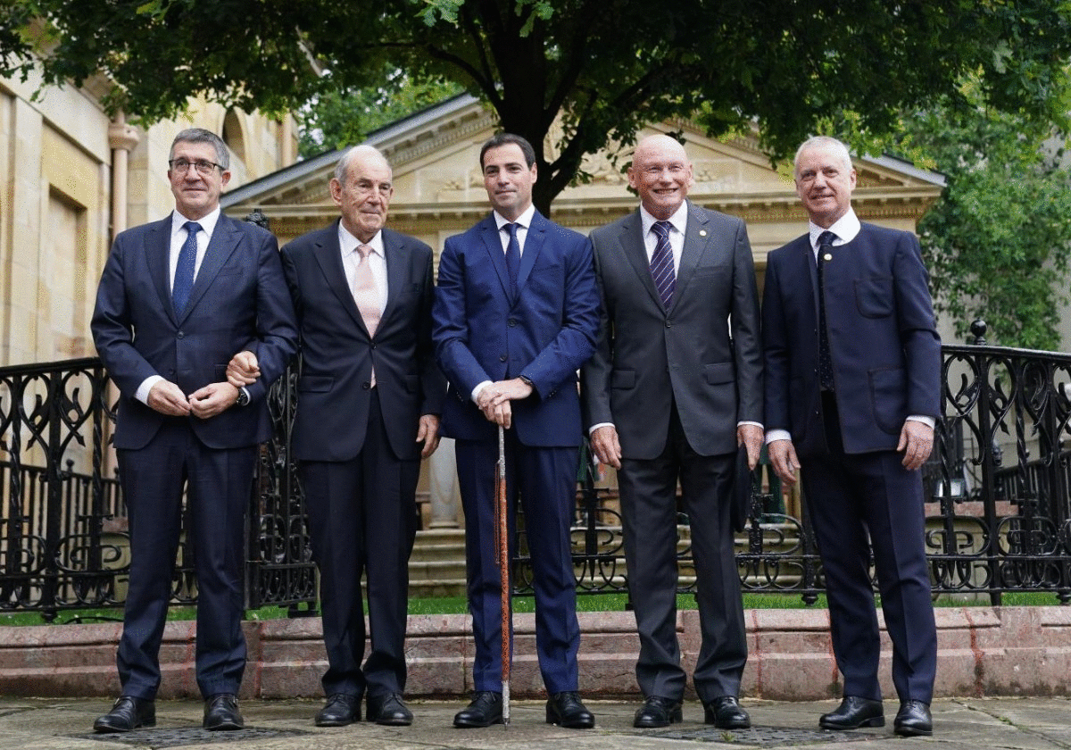 De vuelta al salón de plenos, Pradales ha pronunciado su fórmula de asunicón del cargo y, entonces sí, Urkullu le ha hecho entrega de la makila que él recibió hace doce años de manos de Patxi López, presente al igual que el resto de lehendakaris vivos, Carlos Garaikoetxea y Juan José Ibarretxe. Una vez que se ha producido la imagen más simbólica, la presidenta del Parlamento ha levantado la sesión, se ha escuchado el 'Agur Jaunak' y ha comenzado la ronda de fotos del nuevo jefe del Ejecutivo autonómico con las autoridades.