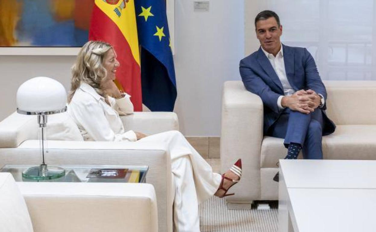 El tira y afloja se mantuvo casi hasta el último minuto, como es ya liturgia en el Gobierno de coalición que conforman PSOE y Unidas Podemos. Pero tal y como estaba previsto, el acuerdo para los Presupuestos de 2023 llegó de madrugada, a tiempo para el Consejo de Ministros de ayer, y se oficializó con la foto previa de rigor entre Pedro Sánchez y la vicepresidenta segunda, Yolanda Díaz, en el Palacio de la Moncloa. Ambos con aire satisfecho. En sus manos tienen ya el instrumento con el que intentarán navegar no solo económica, sino también políticamente, la crisis inflacionista que sacude el país y que reducirá a la mitad el crecimiento del país (hasta el 2,1% del PIB).