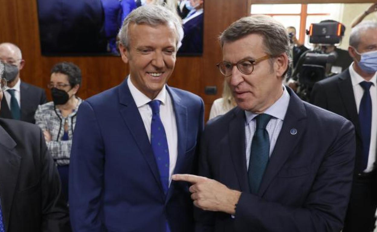 Fue una toma de posesión más vistosa que la del presidente de Castilla y León, su tocayo Alfonso Fernández Mañueco. Alfonso Rueda juró hoyr el cargo de presidente de la Xunta de Galicia arropado por el presidente saliente y líder del PP, Alberto Núñez Feijóo, la vicepresidenta segunda del Gobierno, Yolanda Díaz, y los presidentes de Castilla y León, Madrid, Isabel Díaz Ayuso, y Murcia, Fernando López Miras. El andaluz Juanma Moreno está inmerso en la precampaña electoral. A Mañueco apenas le acompañaron una ministra, la secretaria general del PP y la presidente madrileña.