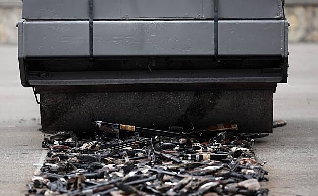 En una línea similar se había expresado minutos antes el presidente del Memorial. Florencio Domínguez afirmó que las armas son elementos «de alta carga simbólica y política» para los terroristas y que su destrucción «refleja de forma visual la derrota de las organizaciones que tanto daño han causado».