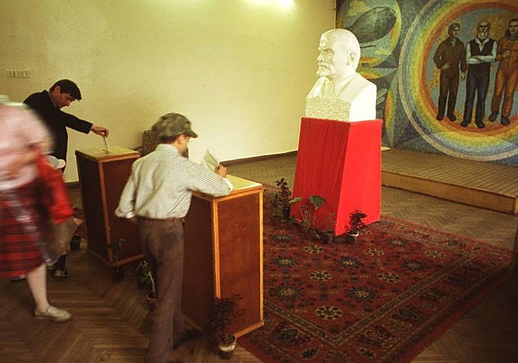 Son las elecciones de junio de 1991, las que ganó Boris Yeltsin que iría dejando atrás la figura de Gorbachov. «Pocos meses después hubo un intento de golpe de estado en la Plaza Roja. Y recuerdo manifestaciones en las que se veían juntas las banderas de Rusia y Ucrania, quién lo iba a a decir hoy», valora Raso. El busto es de Lenin y el votante más cercano a la cámara era poco más que un niño. «Vi votando a varios menores», recuerda.