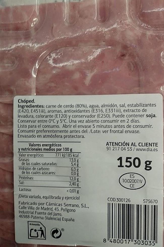La alerta fue por primera vez dada en la Junta de Andalucía. Detectaron la presencia de Listeria monocytogenes en el chopped envasado en finas lonchas de DIA. Se trata de la marca blanca de esta gran superficie, 'Nuestra alacena'.