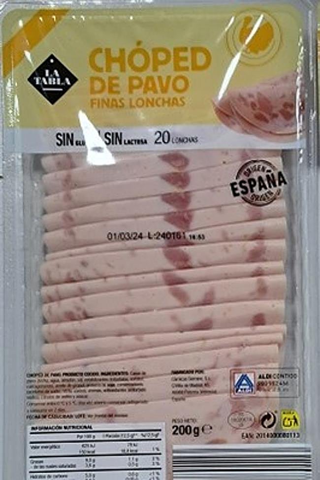 También la mortadela de pavo de la misma marca. Los lotes 252761 y 252771, que caducan respectivamente el 17 y 18 de noviembre. En el caso de otro de sus productos afectados, el chopped de pavo, la referencia es la misma.
