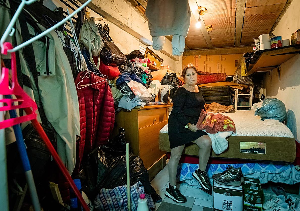 También se hizo con «un armarito que compré para la ropa porque no tenía donde ponerla», recuerda Josefina a punto de llorar. «Vine de vacaciones y me dejó con las maletas en la calle», rememora en alusión a la mujer a que había alquilado la habitación. Gracias a la generosidad de nuevo de sus vecinos, pudo hacerse con un colchón para dormir, uno de los pocos espacios que están más libres de enseres. Y como somier, usó unos palés «que cogí de la calle». «Aquí viví un año y ella alquilando habitaciones» en su casa, insiste con rabia.