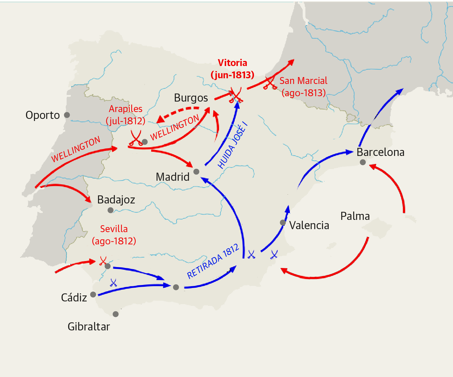 «En dos meses España será mía y dispondré de ella conforme al derecho que me dará la conquista», dijo el emperador en Vitoria, antes de avanzar sobre Burgos y Madrid donde derrotó al ejército español. Napoleón regresó a París cuando el dominio sobre España parecía asegurado. Y en 1812 retiró algunas tropas para trasladarlas a Rusia. Entonces es cuando se hizo evidente la fragilidad de lo conseguido por los franceses tras cinco años de guerra en España.
