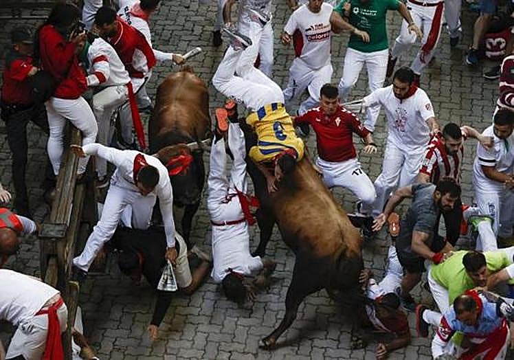 El toro ha embestido a al menos tres corredores. Por suerte, solo uno de ellos ha sido corneado. Un varón, habitual corredor de los encierros, ha sufrido una herida por asta en el brazo izquierdo. Varios corredores han tratado de sujetar al animar y apartarlo del corredor para evitar un ensañamiento mayor.