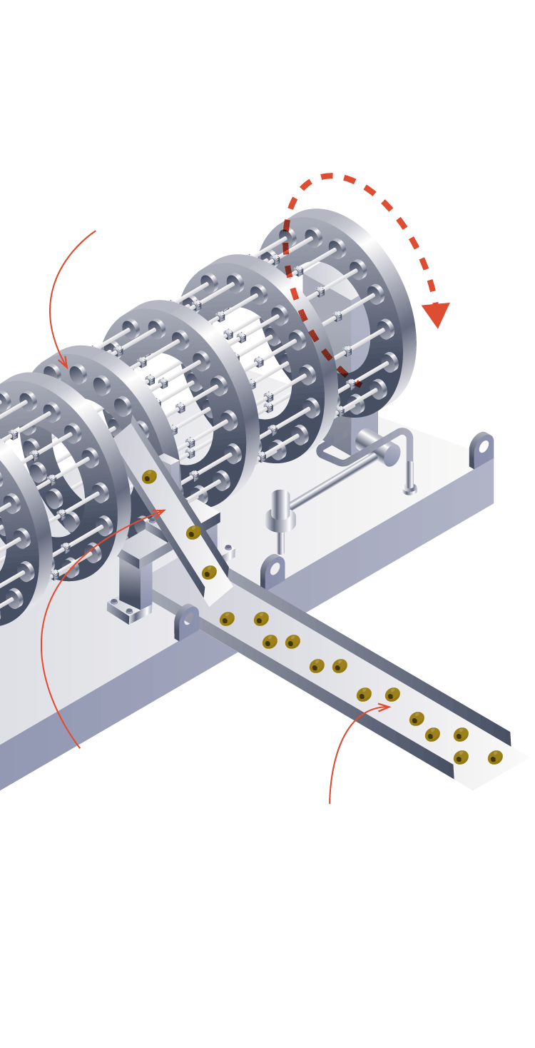Un cilindro en el otro extremo tira del hueso y lo desecha