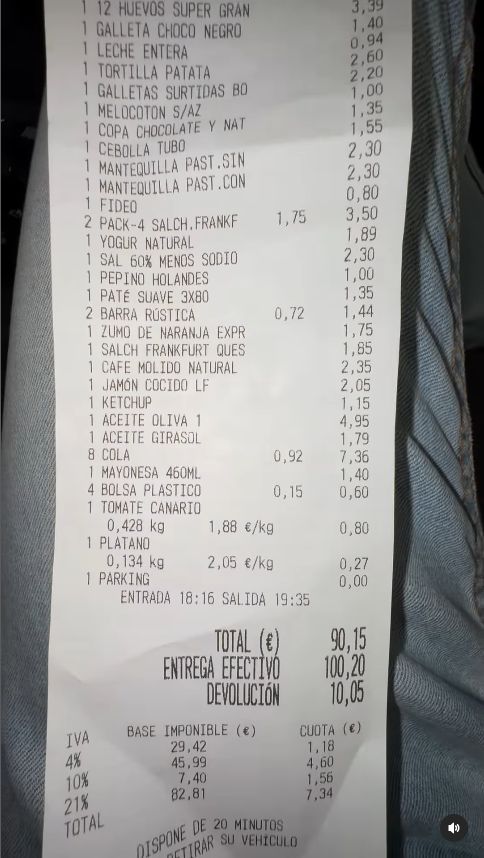 Llega el momento de pagar y el ticket asciende a 90,15 euros. «Nos ha faltado alguna cosilla, por lo que se iría a 95 o 97 euros», concluyen. En los comentarios, los seguidores del creador de contenido comparten su asombro. «La triste realidad», «es una pasada», «menuda locura, 40 euros de diferencia», escriben.