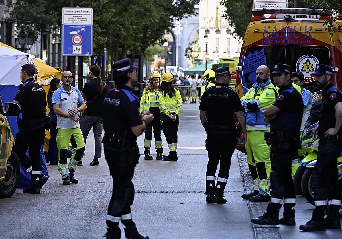 Inmediaciones del lugar en el que el derrumbe parcial de un edificio en pleno centro de Madrid. Efe