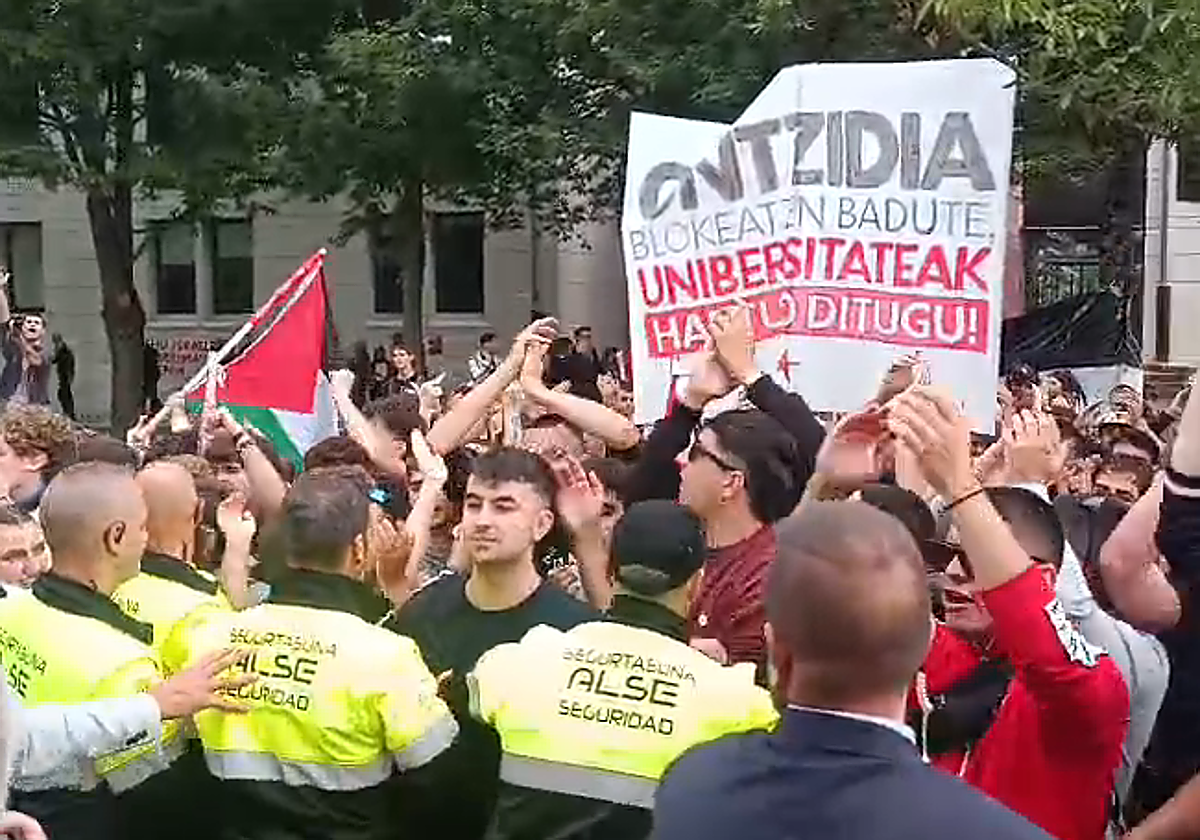 El propio rector y la vicerrectora Estitxu Garai se han acercado a intentar dialogar con los manifestantes para pedirles «respeto», aunque ha sido en vano y la protesta ha continuado. Dada la imposibilidad de desarrollar el acto con normalidad, la Ertzaintza ha desplegado los antidisturbios, ante cuya presencia los manifestantes han retrocedido. No se han producido cargas.