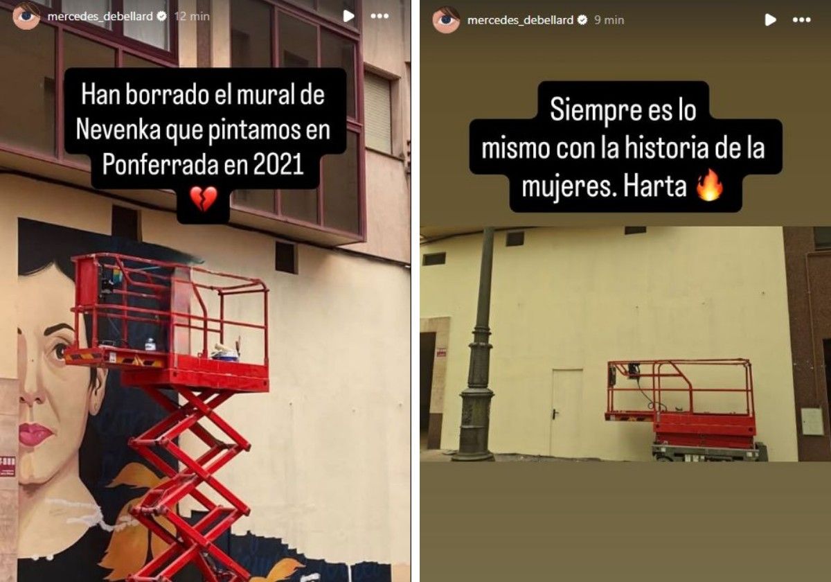 Borran el mural con el rostro de Nevenka Fernández en el centro de Ponferrada. Ubicado en una fachada entre las calles La Paz y Doctor Fléming, fue una obra de la ilustradora Mercedes de Bellar promovida por Netflix en 2021, coincidiendo con el estreno del documental. En el dibujo aparecía la imagen de la que fuera concejala de Hacienda en esta localidad y logró la primera condena de un cargo político por acoso, el entonces alcalde, Ismael Álvarez.
