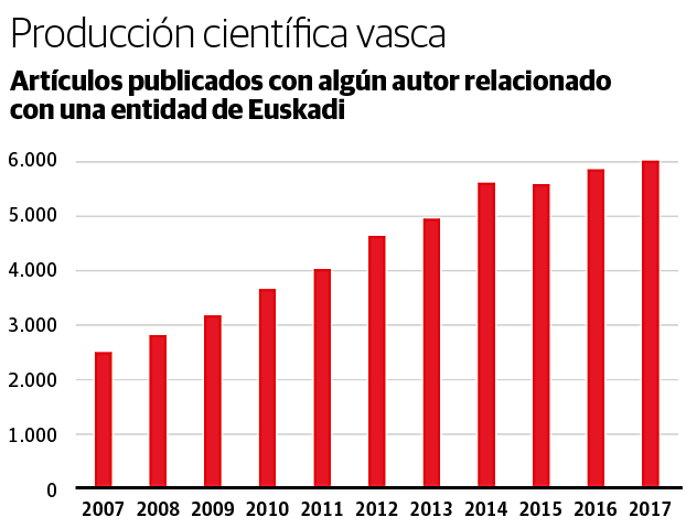 El País Vasco ha superado por primera vez el umbral de las 6.000 publicaciones científicas anuales