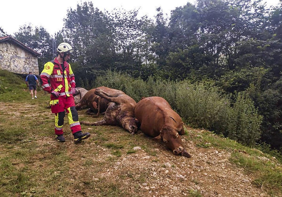 El equipo de bomberos del 112 y de Torrelavega, que estuvo ayudado por los propios ganaderos y por otros compañeros, ha estado trabajando durante toda la madrugada sacando los cuerpos de las reses muertas para poder rescatar a las tres que aún seguían con vida. Tal y como han explicado, los animales estaban tan apelotonados que algunos ejemplares seguían de pie a pesar de estar muertos.