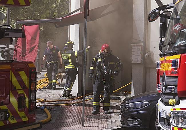 El incendio en el restaurante situado junto al Ministerio del Interior se saldó con nueve efectivos heridos, dos de ellos con quemaduras de gravedad
