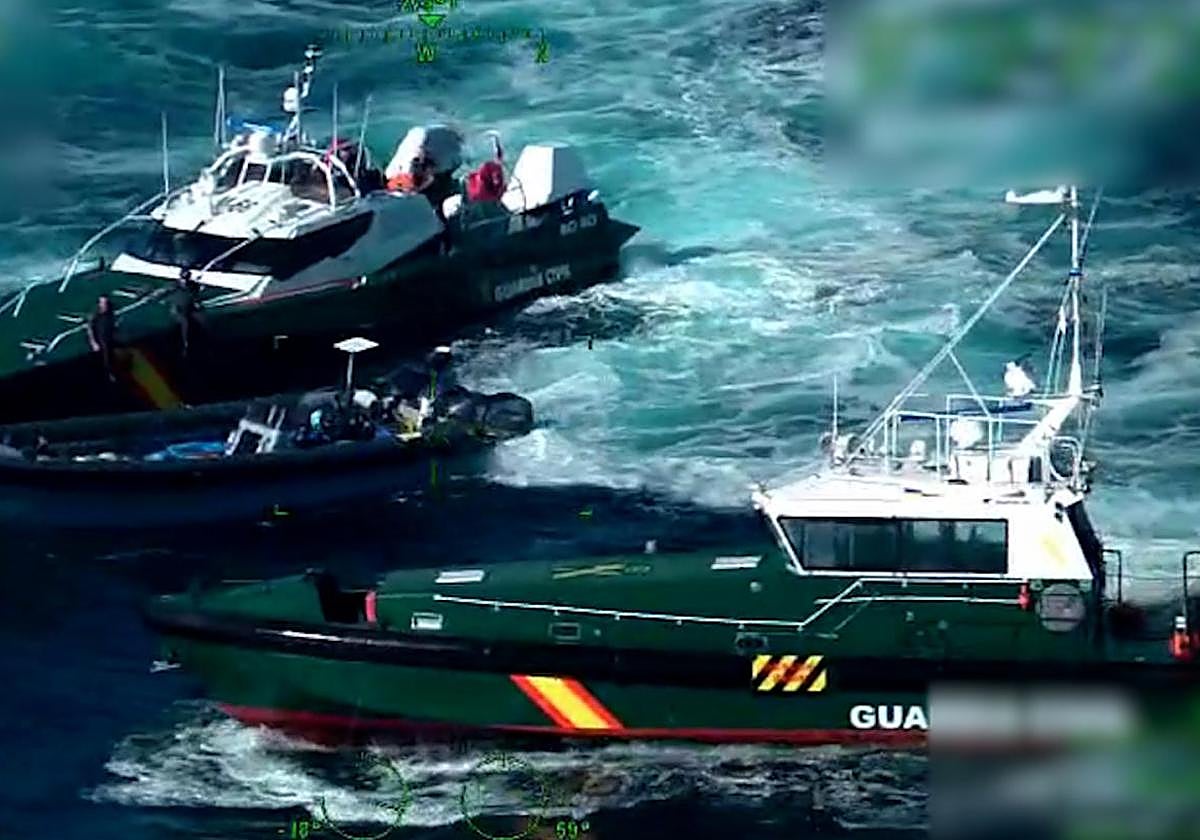 Según ha explicado la Guardia Civil, ante la posibilidad de que se tratase de un desembarco de droga se alertó a dos patrulleras y un helicóptero de la Guardia Civil, que de manera conjunta comenzaron el seguimiento de la embarcación sospechosa. Una vez avistado desde el helicóptero se constató que transportaba fardos de arpillera y petacas de combustible.