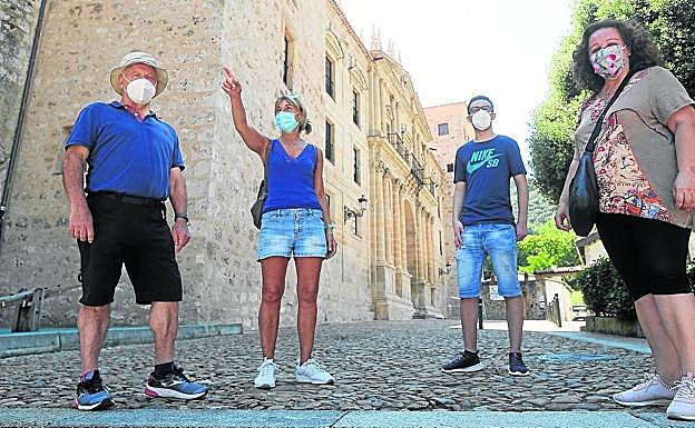 Carolina Tricio viene de Vitoria, pero, una vez más, quedarse en eso supondría una imperdonable simplificación: «Mi madre es de aquí, yo nací en Miranda, me casé con uno de aquí y hemos acabado en Vitoria». Carolina se siente ligada «al paisaje, el entorno y las raíces» y, en este año raro, ha dedicado mucho tiempo a visitar Oña con el pensamiento: «Yo aquí estoy en el paraíso y no se me ocurre mejor lugar para pasar este verano. Mi marido se ha ido al Pirineo y yo le he dicho que no me quitan ni cinco minutos de estar aquí. En el confinamiento me mató no poder venir, lo tuve en la cabeza todo el tiempo. Nos dejaron cruzar la frontera entre comunidades un sábado a las doce de la noche y, a las once y media, yo ya estaba en el garaje, para pasar a las doce justas». Y Francisco González ha vivido cuarenta años en Leioa, pero ha acabado estableciéndose en Oña, lo que en su caso equivale a volver: «Yo soy nacido en Poza de la Sal, me llaman Paco el Pozano. De once hermanos, seis nos fuimos para Bizkaia», relata. Él llama a aquel éxodo «la revolución industrial», pero los vínculos de La Bureba y Bizkaia ya venían de antes: «Yo, con 11 años, fui a Lekeitio a estudiar interno con los mercedarios. Mi abuelo Ubaldo fue el responsable de la electricidad de las minas de Gallarta y a mi abuela le tocó esconder muchas veces a la Pasionaria», va repasando Paco, que dedicó la cuarentena a su gran pasión, la talla de madera: «Hice diecisiete lámparas y joyeros para las nietas».