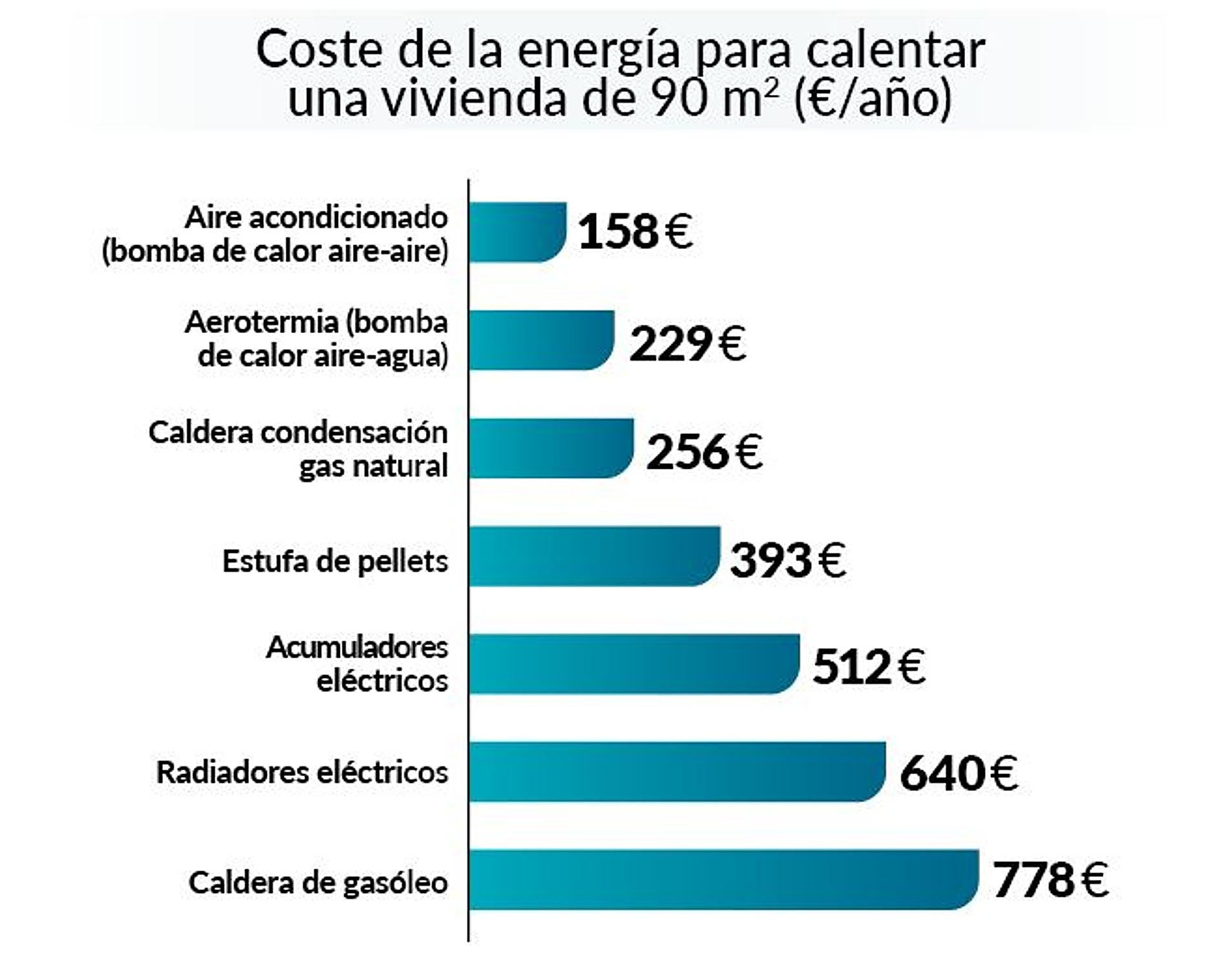 Las ventajas es que el consumo resulta económico, entre 160 y 230 euros al año. Sin embargo, el gran inconveniente es que requiere unidad exterior, lo que no siempre es posible. Además, la inversión inicial es bastante elevada, de casi 10.000 euros.