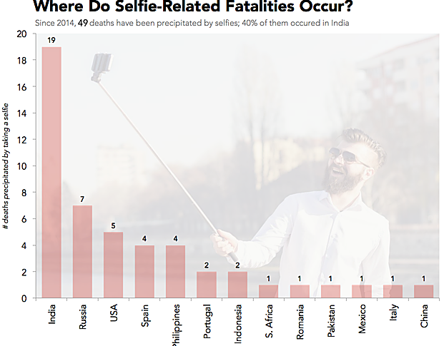 El año pasado, investigadores del Instituto de Ciencias Médicas All India (AIIMS) publicaron en la revista 'Journal of Family Medicine and Primary Care' un estudio que cuantificaba las muertes accidentales provocadas por la realización de 'selfies' de forma imprudente.