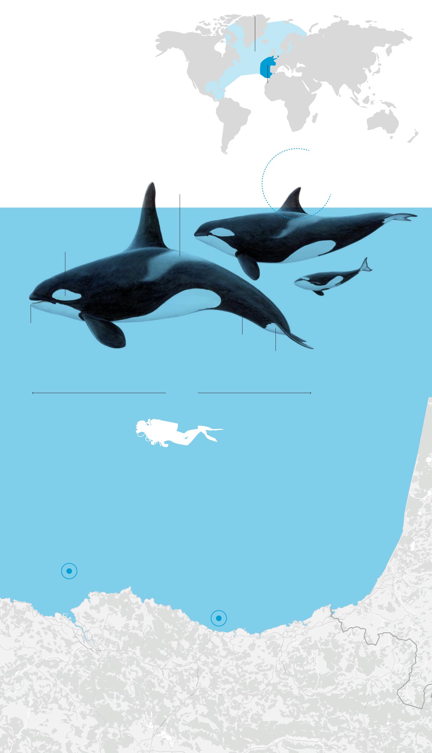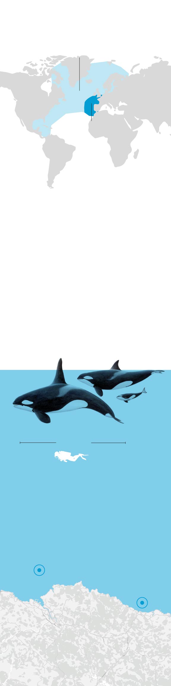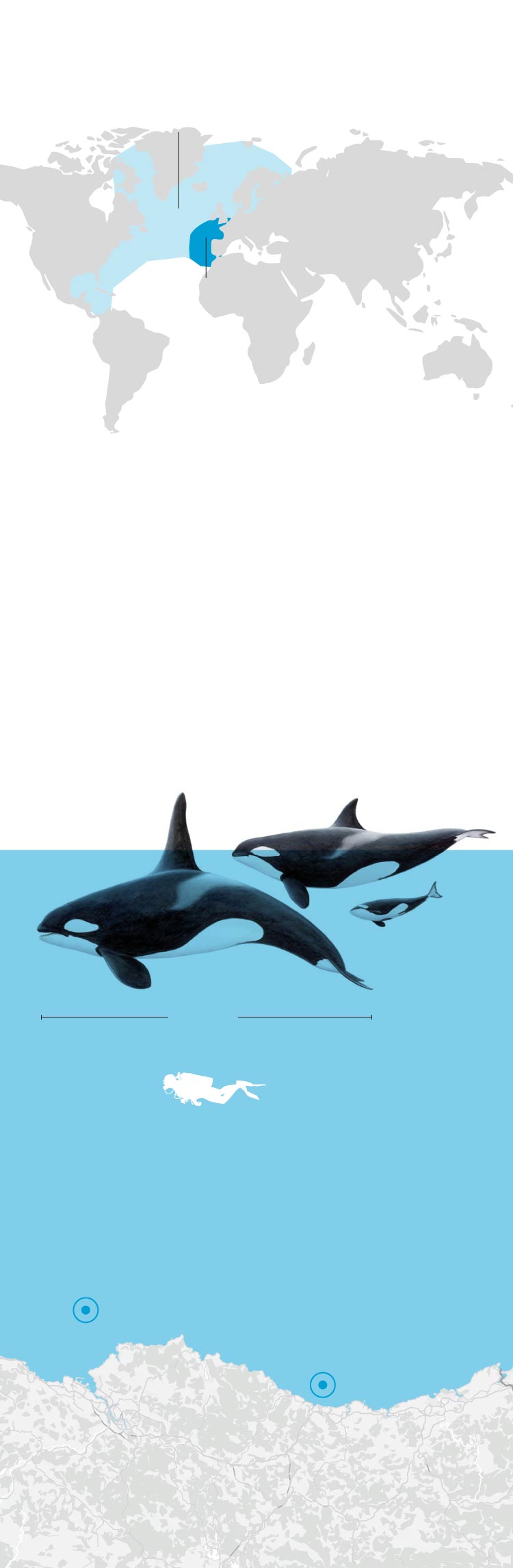 Pero, a comienzos de este mes, los investigadores de Orca Atlántica detectaron que estos cetáceos se han separado en dos grupos. Uno seguía en el Estrecho mientras que el segundo se encontraba en el Cantábrico. Por qué se produjo este cambio es una incógnita.