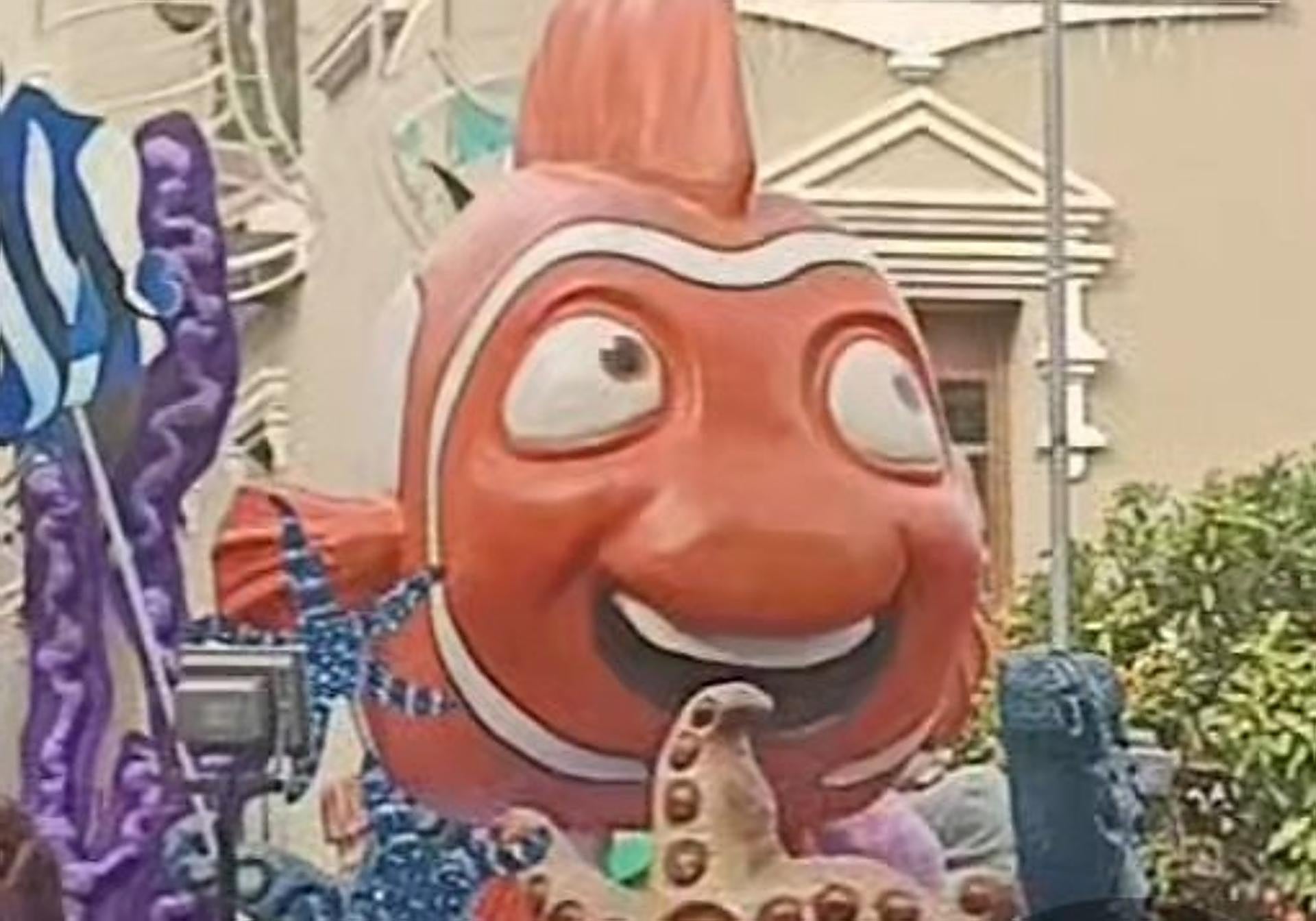 La representación que salió en el desfile poco tenía que ver con el gracioso y alegre pez de la película de Disney