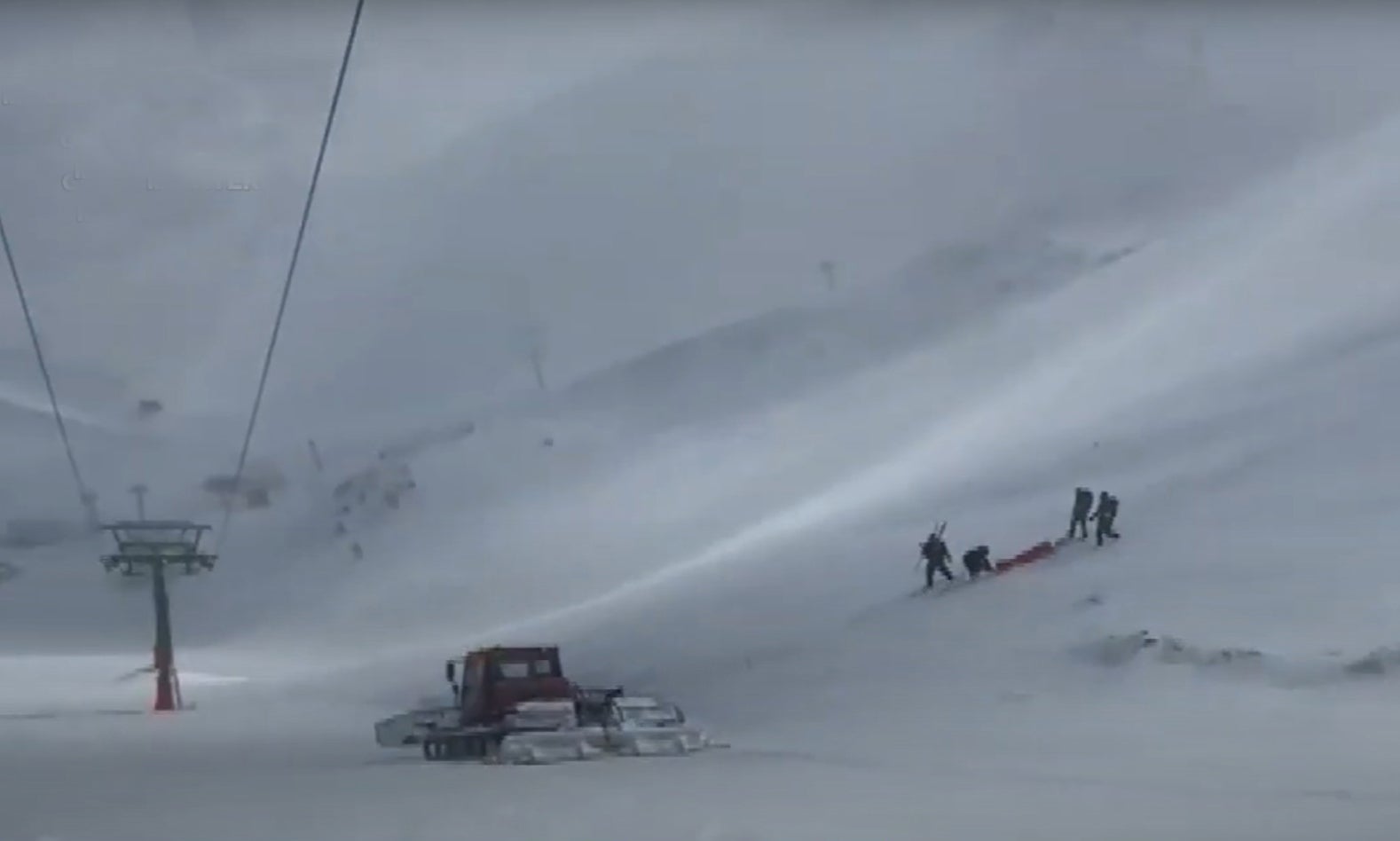Tras ello, dos agentes del GREIM y tres pisters socorristas de Valdezcaray se aproximan a la zona en motos de nieve, continuando a pie hasta el lugar en la que se encuentran los montañeros accidentados, zona de muy difícil acceso a causa de la pendiente, la nieve profunda, la temperatura y la fuerte ventisca.