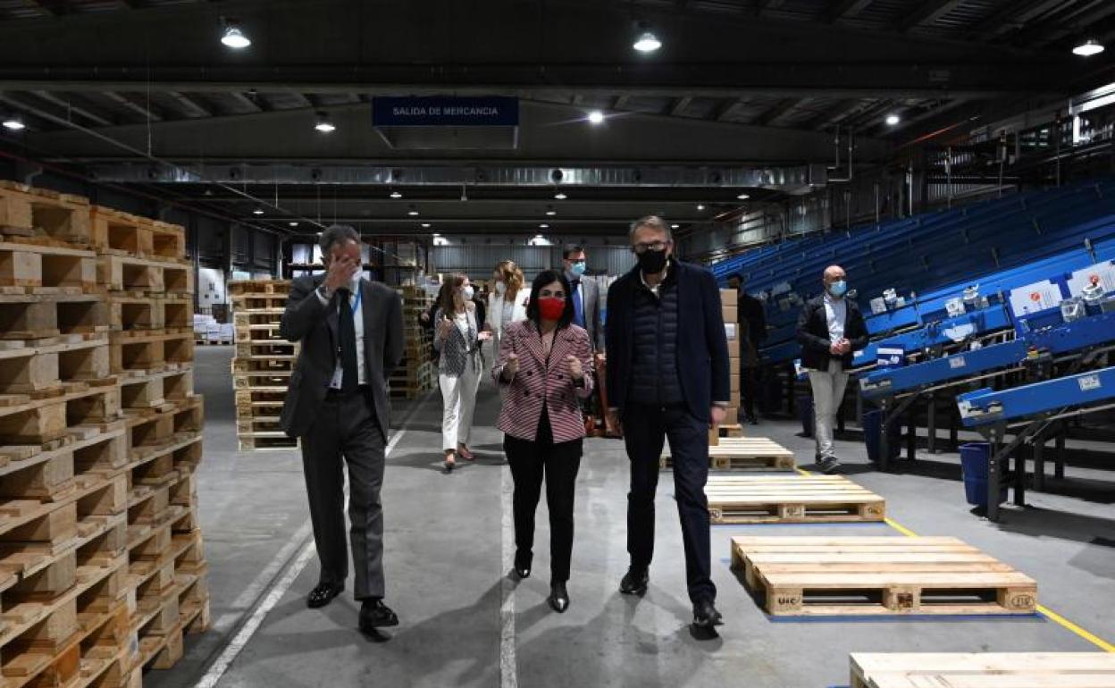 La ministra de Sanidad, Carolina Darias, ayer en el centro de almacenamiento para recepcionar las vacunas de AstraZeneca. foto: efe | Vídeo: ep