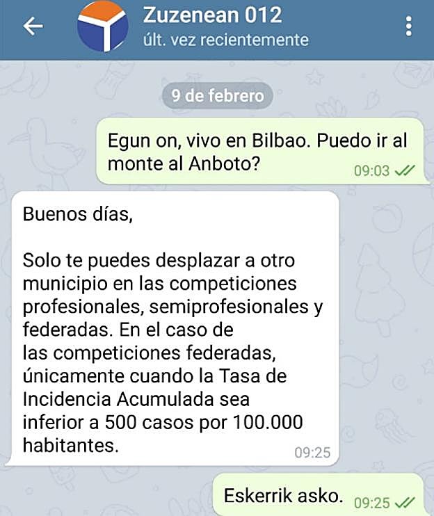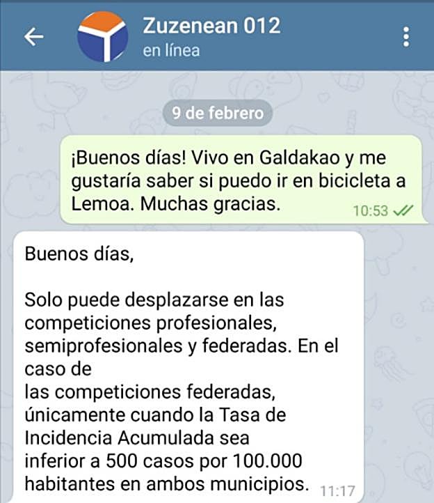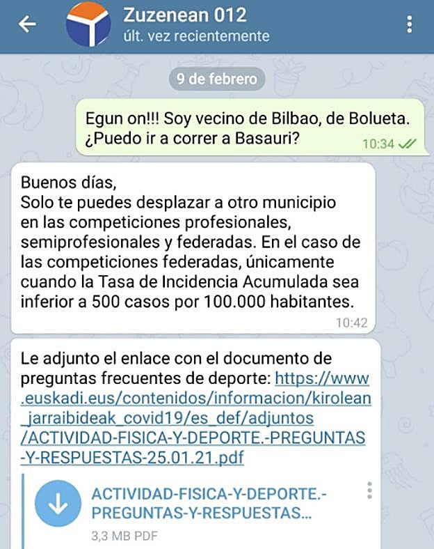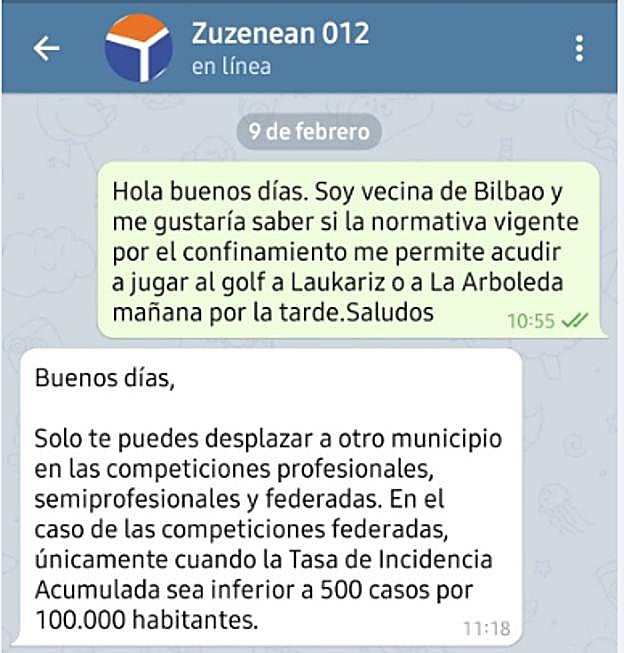 El Gobierno vasco lo deja claro. No se puede ir a otro municipio a hacer ninguna actividad deportiva: ni correr, ni andar en bici, ni ir al monte... ni tampoco jugar al golf. Las respuestas recibidas en el canal Zuzenean, el servicio de atención ciudadana del Ejecutivo, no dejan lugar a dudas y contradicen la versión tanto del miembro del LABI que se saltó el confinamiento para ir a jugar a golf a Laukariz como la del Departamento de Salud, que le dio la razón.