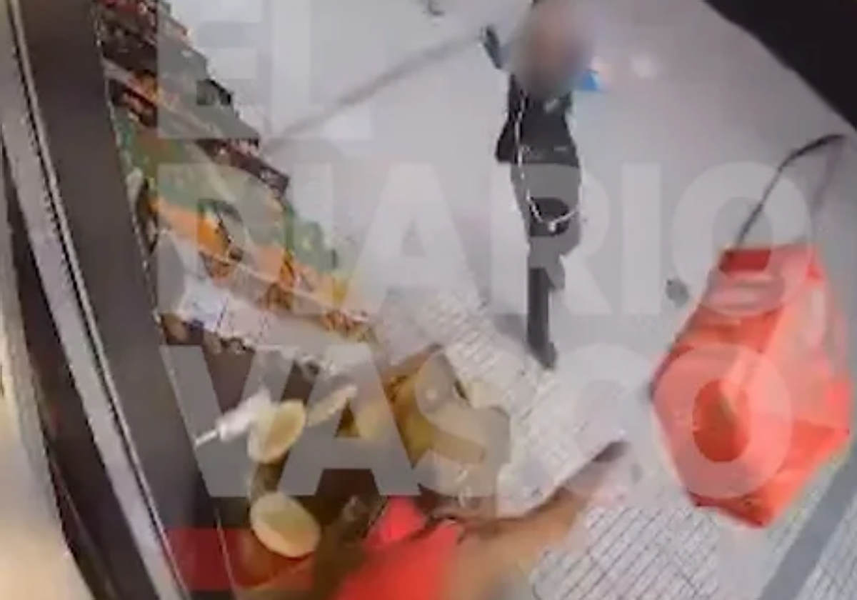 Los atrincherados empiezan a lanzar cestas, y los oponentes responden a melonazo limpio. También vuela alguna naranja. «Lanzaban todo lo que pillaban», dice la responsable, incluido algún carrito metálico. Al menos se aprecia a un chico con un arma blanca, al que la trabajadora llega a agarrar de la espalda y empuja para echarle y a otro que esgrime un paraguas a modo de escudo y un objeto punzante en la otra mano. En un momento dado, la empleada recibe el golpe de una de las cestas que sale por los aires.