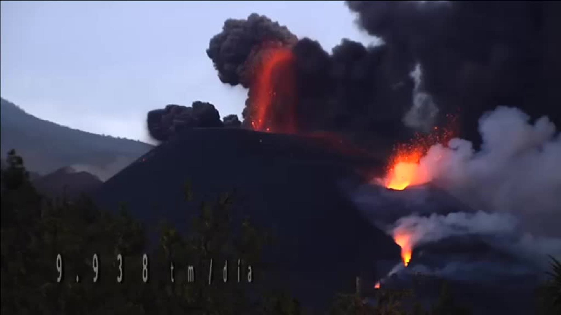 El volcán sigue fuerte. Emite muchísima lava. Cae por la ladera y es tan líquida que a ratos...