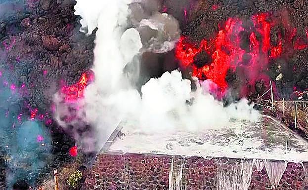 El lunes se anunció que el contacto era cuestión de horas, para esa misma noche, algo que finalmente se descartó. Hasta ahora la lava ha recorrido algo más de la mitad de los alrededor de 5 kilómetros de distancia en línea recta entre Cumbre Vieja y el litoral. En el momento en que el magma entre en contacto con el agua, provocará una violenta reacción química, similar a cuando se vierte agua en una sartén con aceite hirviendo. Desprenderá una ingente masa de vapor y gases tóxicos, cloro incluido. Si llega a sumergirse en el mar, es posible que lo haga en Playa Nueva, cerca de Tazacorte.