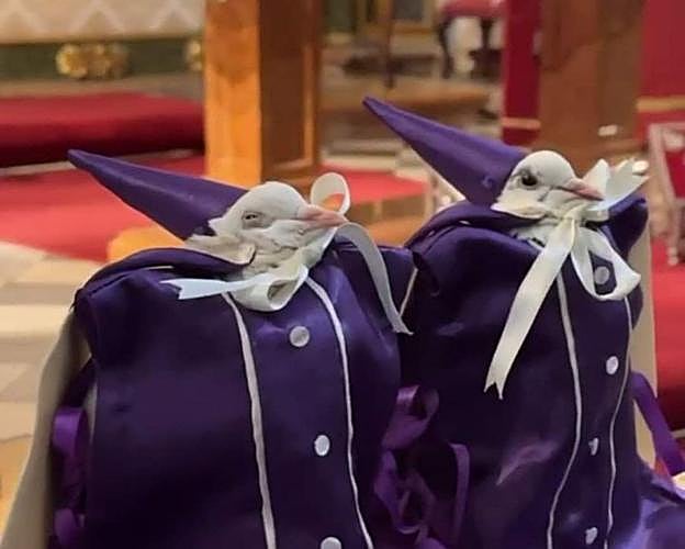 Polémica tradición en Jaén: disfrazan y usan pegamento con palomas para una procesión